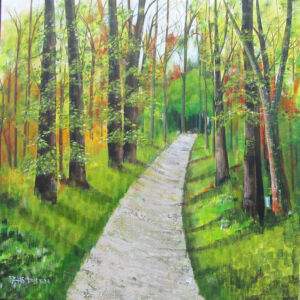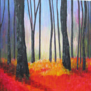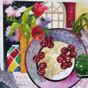 I work in watercolour and acrylics, using bold colours and shapes. I particularly like making collage and am never happier than when I am cutting and gluing paper that I have previously prepared with colour and texture to make pictures.